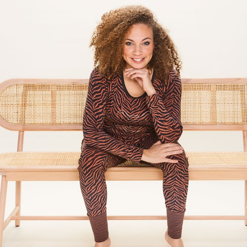 Charlie Choe Dames Pyjama pullover - U45158-38 - Terra Tijgerstreep