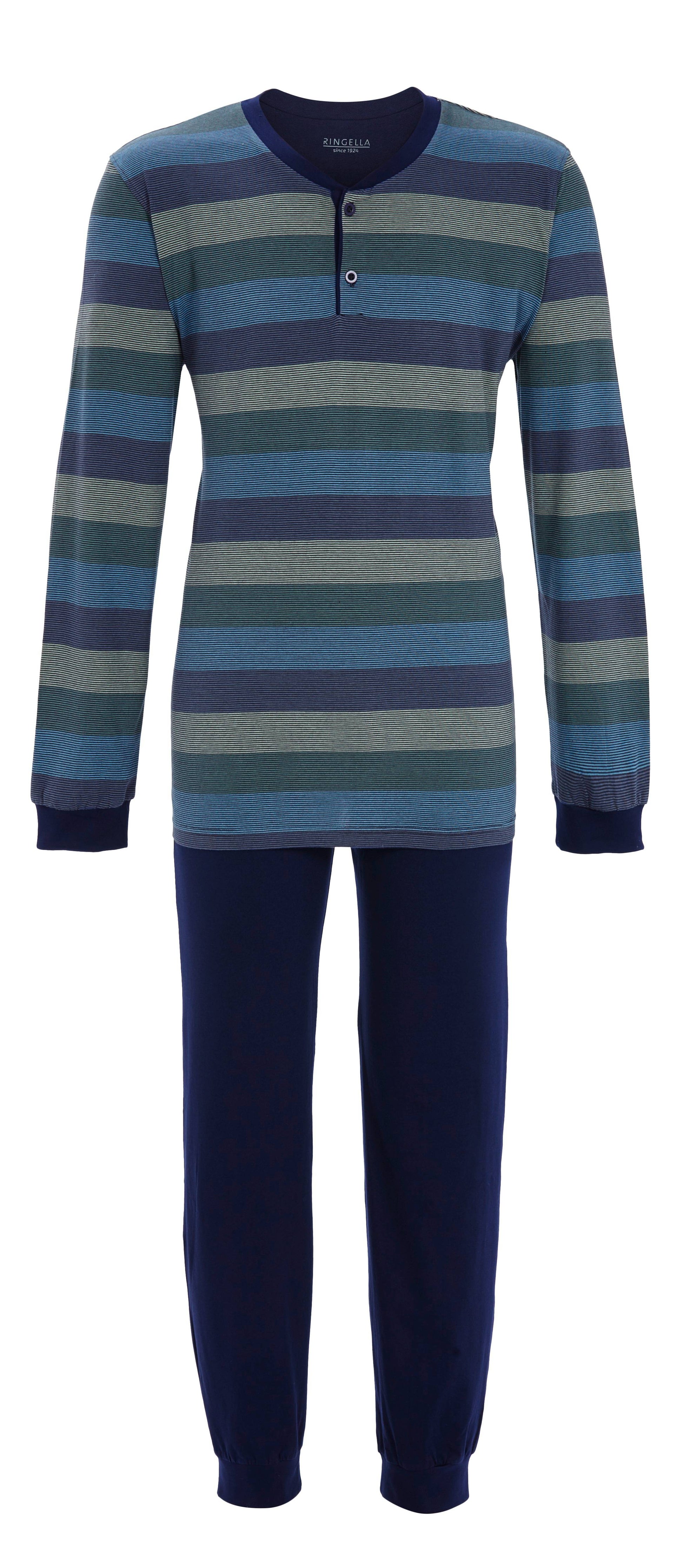 Heren pyjama met boorden en knoopsluiting gestreept - 5541206 - Blauw