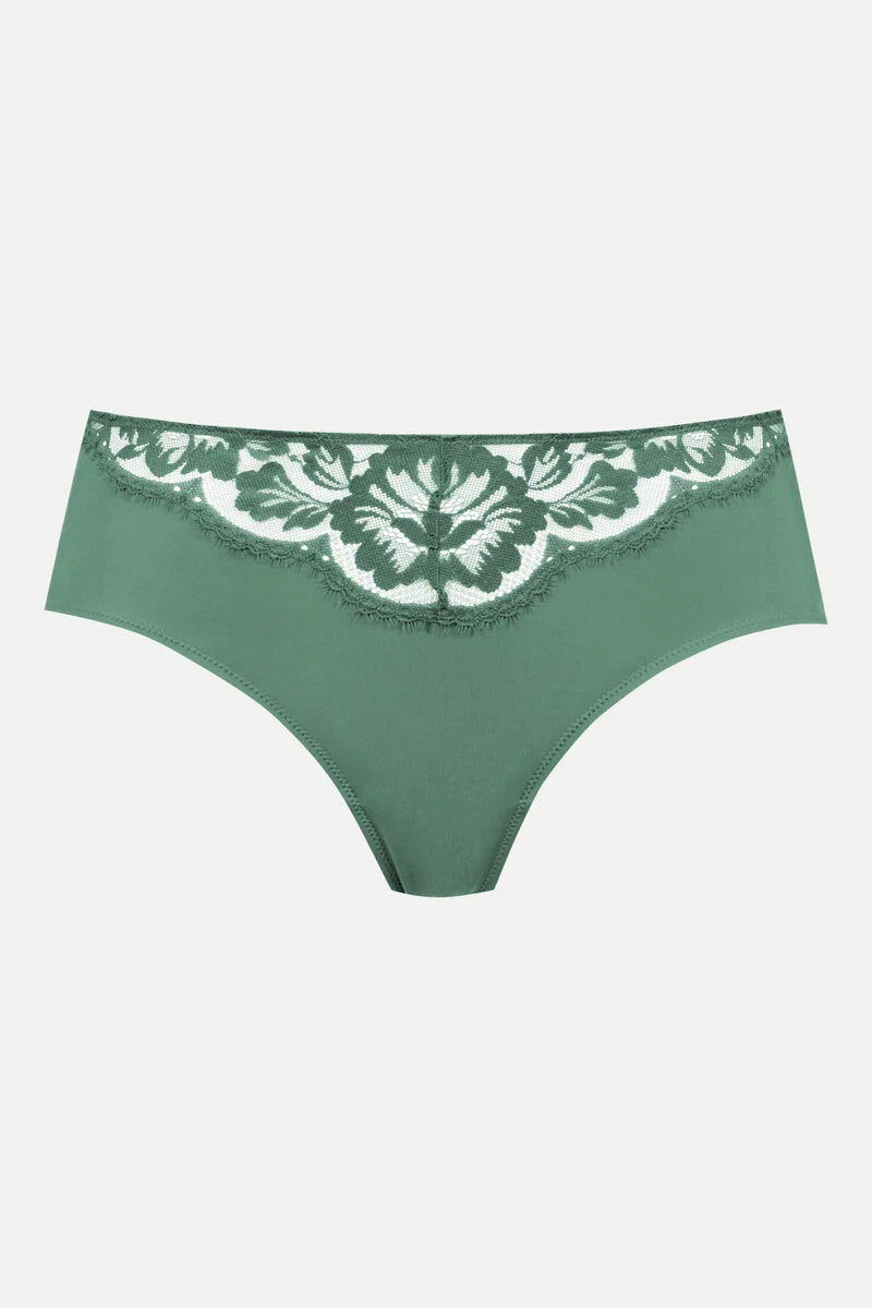 De American Pants in de kleur Peat Moss combineert elke dag aangenaam comfort met een vrouwelijke uitstraling. De strakke snit wordt aangevuld met de delicate kanten versiering aan de voorkant en maakt de slip tot een sexy metgezel die tegelijkertijd perfect geschikt is voor dagelijks gebruik. De serie Amazing valt op door een spannend spel van ondoorzichtige elementen en transparante stoffen. Een geweldig aanbod aan bh's en onderstukken is versierd met bloemenkantversieringen. Verleidelijke lingeriedromen ontstaan uit edele materialen, elegante snitten en betoverende kleuren. De American Pants is Oeko-Tex® Standard 100-gecertificeerd, wat betekent dat u met dit product actief kiest voor textiel dat is getest op schadelijke stoffen.
