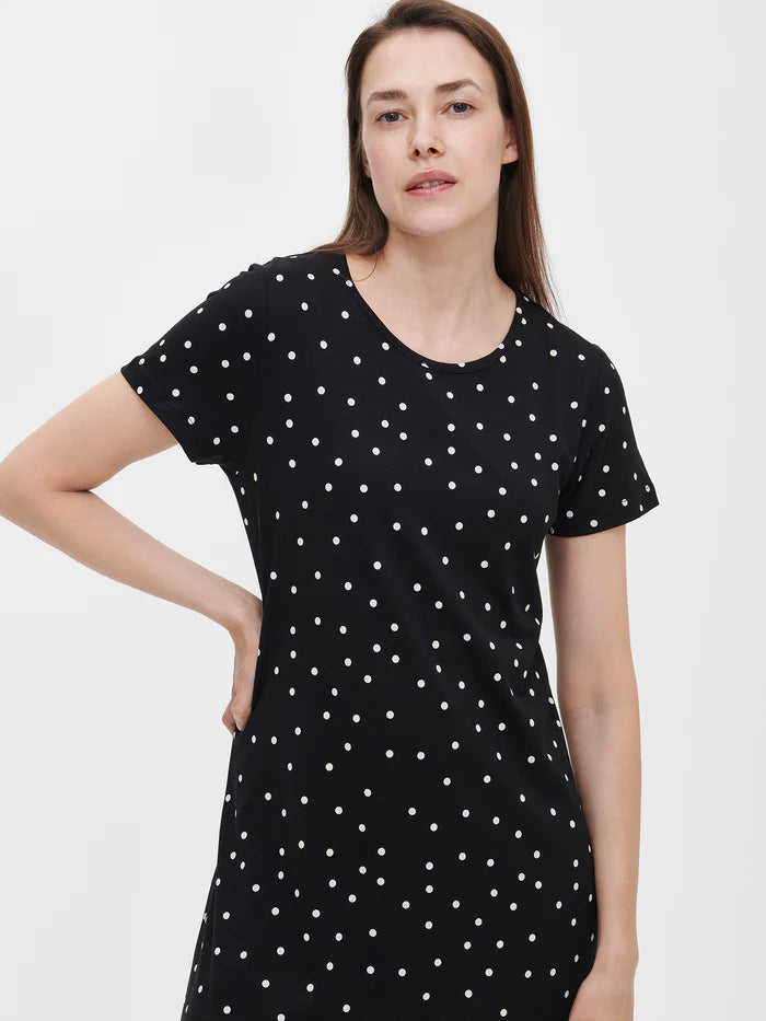 Nanso lang nachthemd korte mouw - PALLO 28782 - Zwart wit gestipt