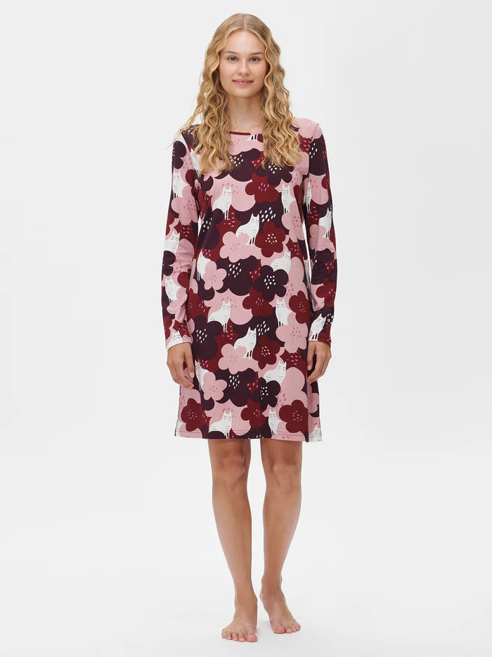 Nanso nachthemd lange mouw kat - 28681 Sylvi - Rood