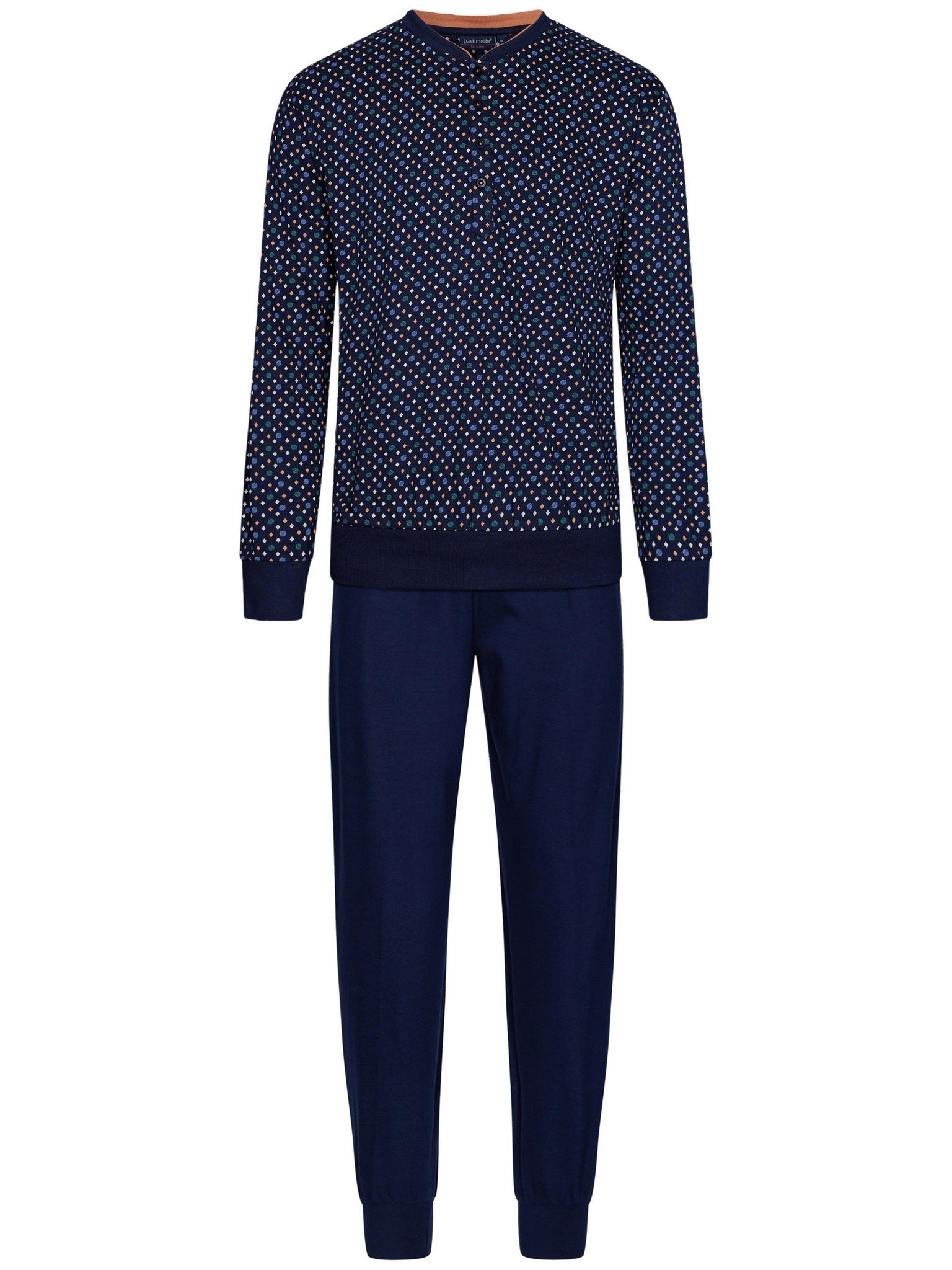Pastunette heren Pyjama knoopsluiting en boorden - 23242-612-4 - Donker blauw/ oker