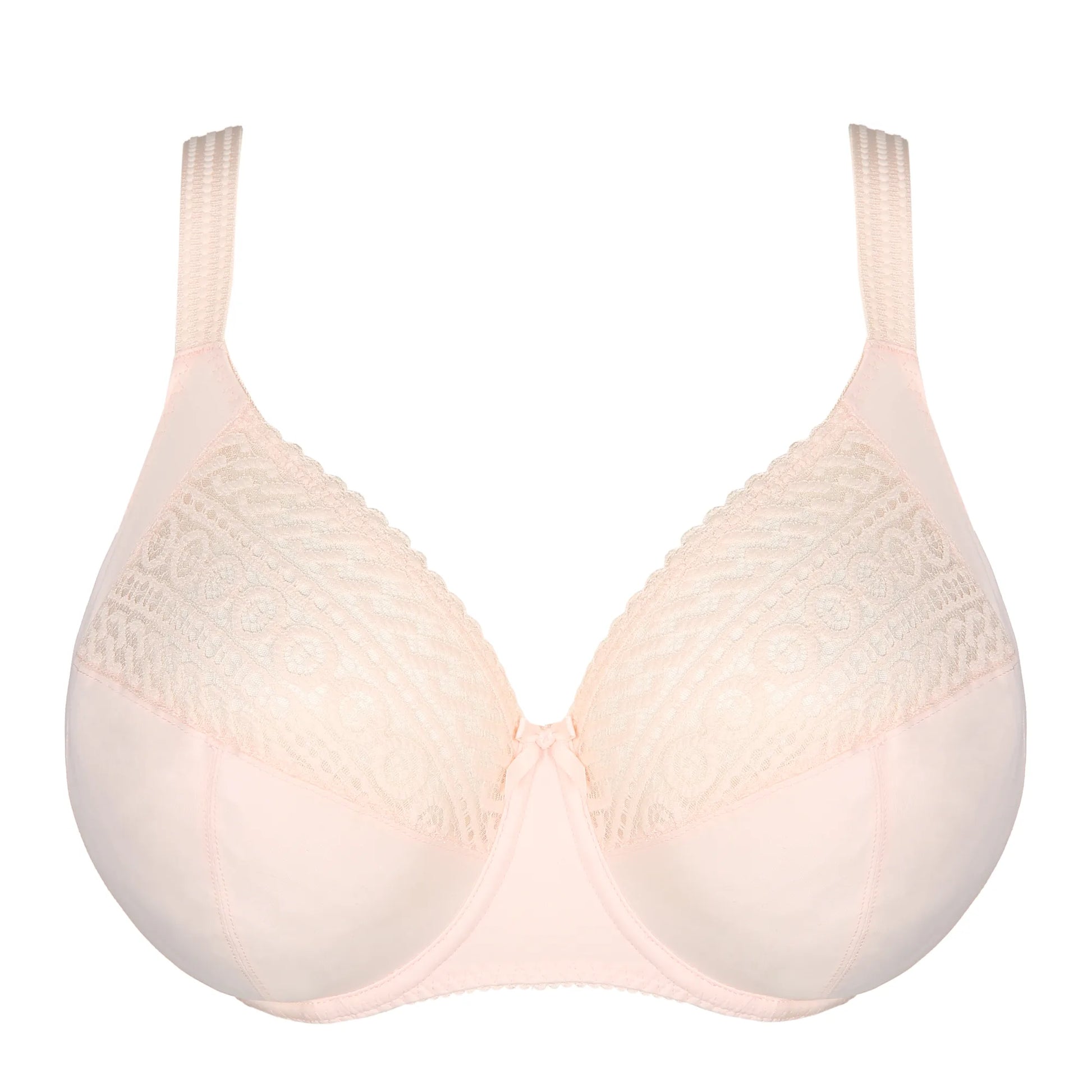 Deze volle cup bh geeft je comfort en stijl. De ondercups zijn glad en blikdicht, de bovencups bestaan uit kant die perfect aansluit en je decolleté elegant omlijst. Zachtroze Crystal Pink is modieus, vrouwelijk en makkelijk te combineren.
