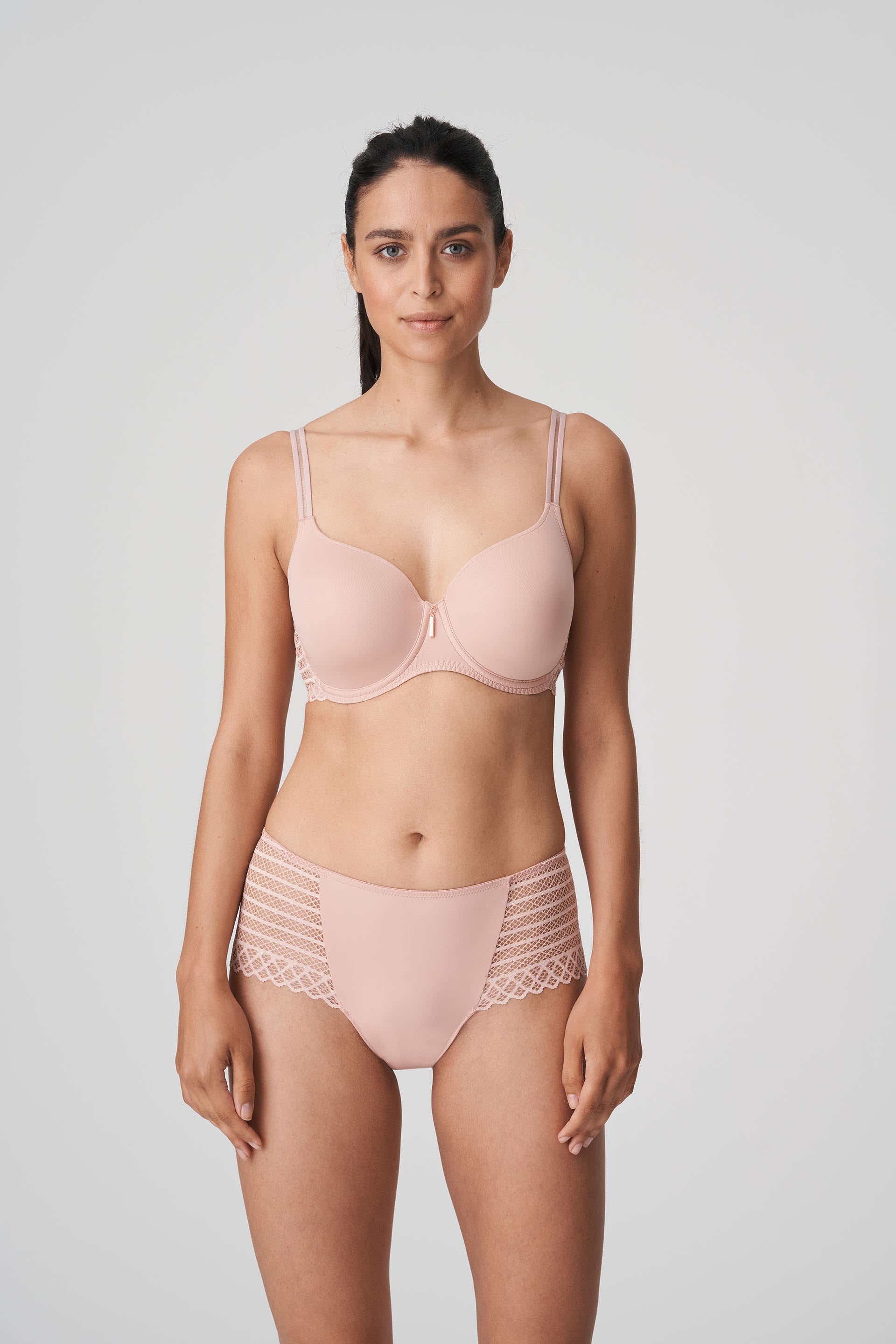 Gladde mousse cups én sexy geometrische kant aan de zijpanden, deze hartvormige bh heeft het allemaal. Met elegante kanten schouderbandjes en een fijn juweeltje van roségoud middenvoor. Powder Rose is een zachtroze nudetint. Mooi onder elke lichte zomeroutfit.