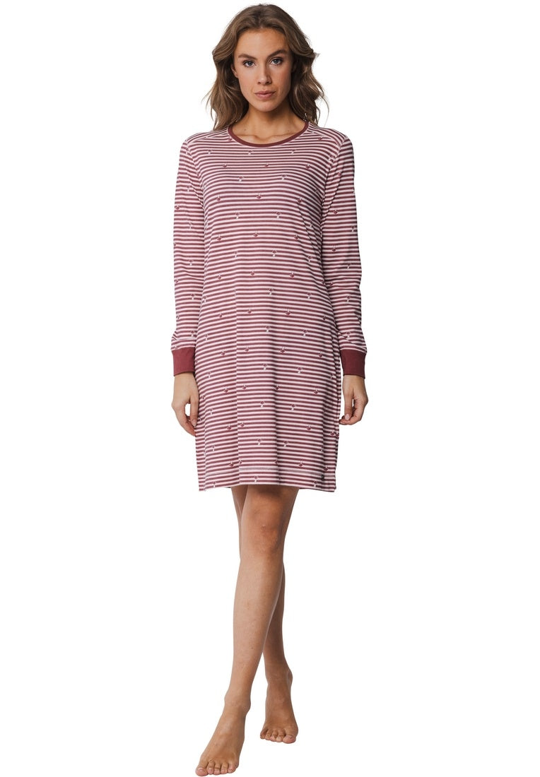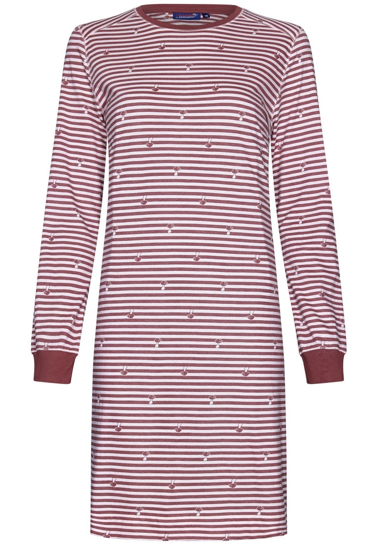 Rebelle Nachthemd fijne strepen met kleine paddestoelen - 11242-408-2 - donker rood