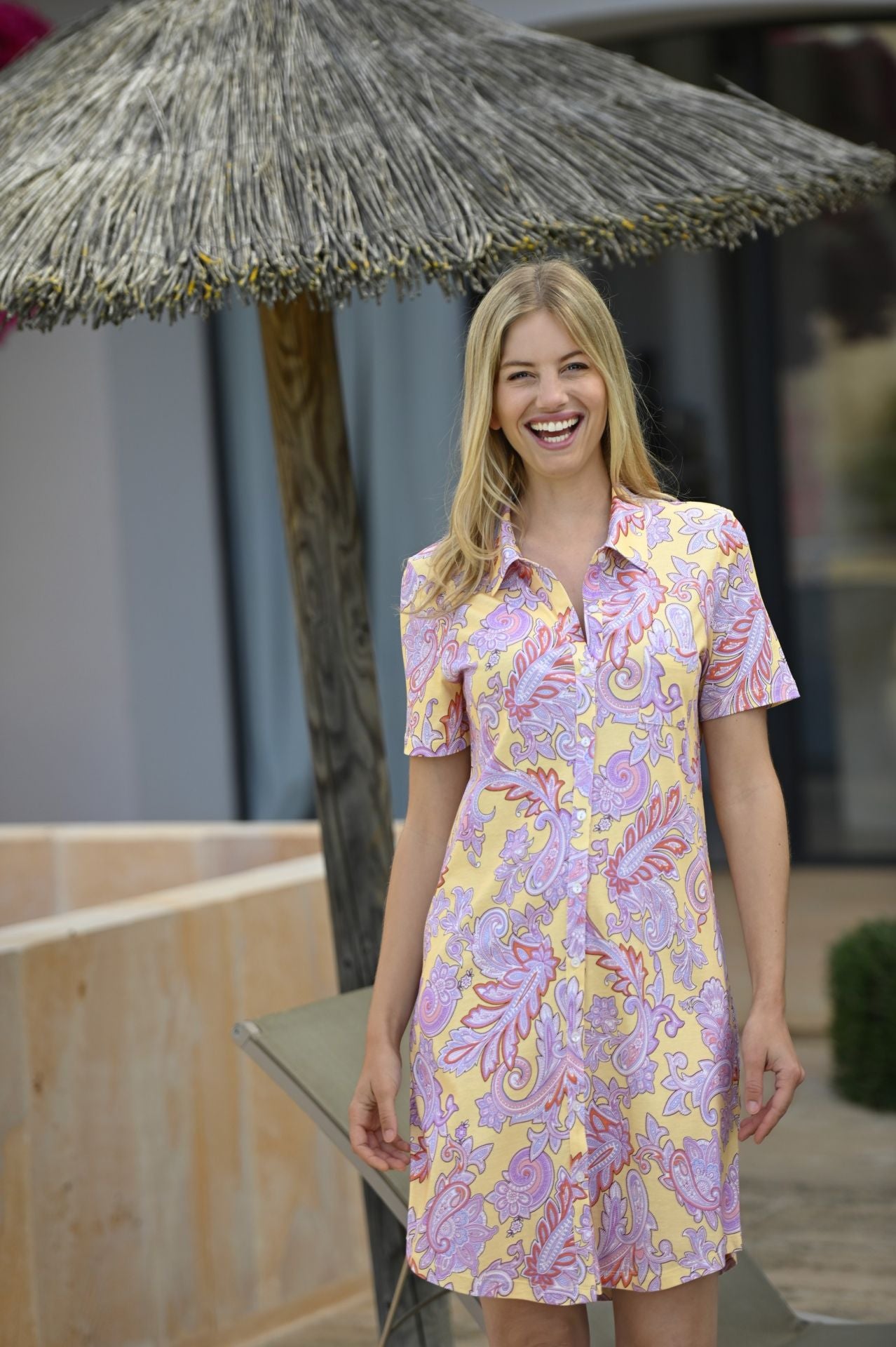 De mooie uitstraling is wat dit model zo charmant maakt. Het paisley-ontwerp komt prachtig tot zijn recht in het kleurrijke ontwerp. Gemaakt in de vorm van een overhemd met knoopsluiting en een klein kraagje. De zoom is modieus licht afgerond. Een klein borstzakje is onmisbaar. Gemaakt van hoogwaardige, soepele katoenen modal stof, voel je je helemaal op je gemak. Het materiaal is onderhoudsvriendelijk, huidvriendelijk en heeft een blijvende kleurglans.