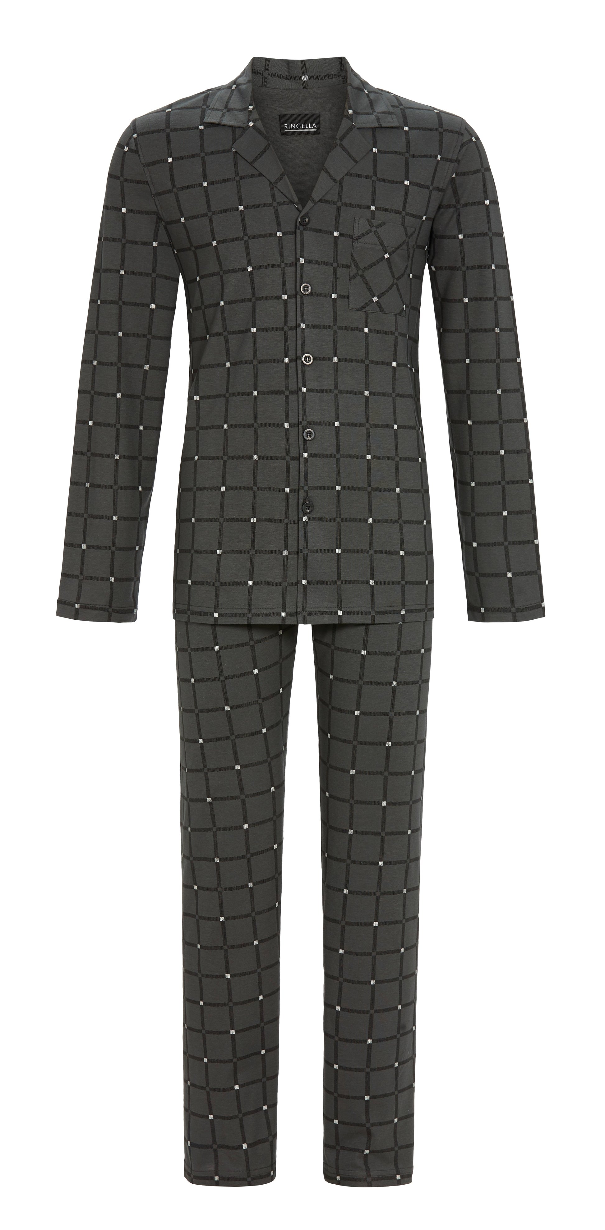 Ringella heren doorknoop Pyjama met kraag geruit - 3541223 - Grijs