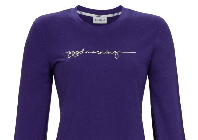 Het slaapshirt gemaakt van single jersey in zacht vloeiende kwaliteit puur katoen, biedt je compleet draagcomfort. De GOODMORNING motief print op de borst is een blikvanger. Praktische gebreide manchetten zijn te vinden bij de halslijn en bij de mouwzoom. De zoom is modieus licht afgerond.
