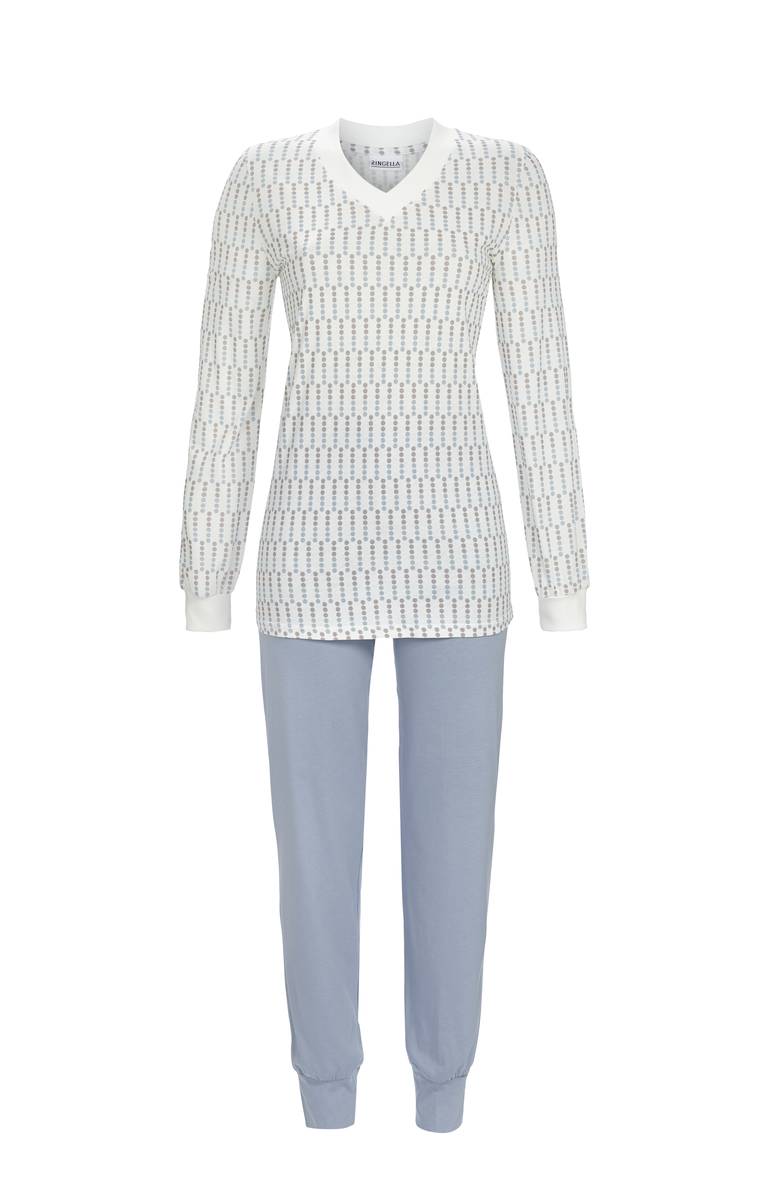 Deze pyjama is een stijlvolle en comfortabele keuze voor ontspannen nachten. Hij heeft een gebreide halslijn voor een elegante look. De lange mouwen hebben ook gebreide boorden voor extra comfort en een nauwsluitende pasvorm. Combineer hem met een effen broek met een praktische elastische tailleband en gebreide boorden aan de pijpen. Het grafisch geplaatste stippenpatroon geeft deze pyjama een speelse en moderne touch, waardoor hij een echte blikvanger is. Gemaakt van puur katoen in een warme interlockstof, is deze pyjama bijzonder zacht en comfortabel op de huid. Je zult je helemaal thuis voelen in deze pyjama, of je nu slaapt of thuis ontspant.