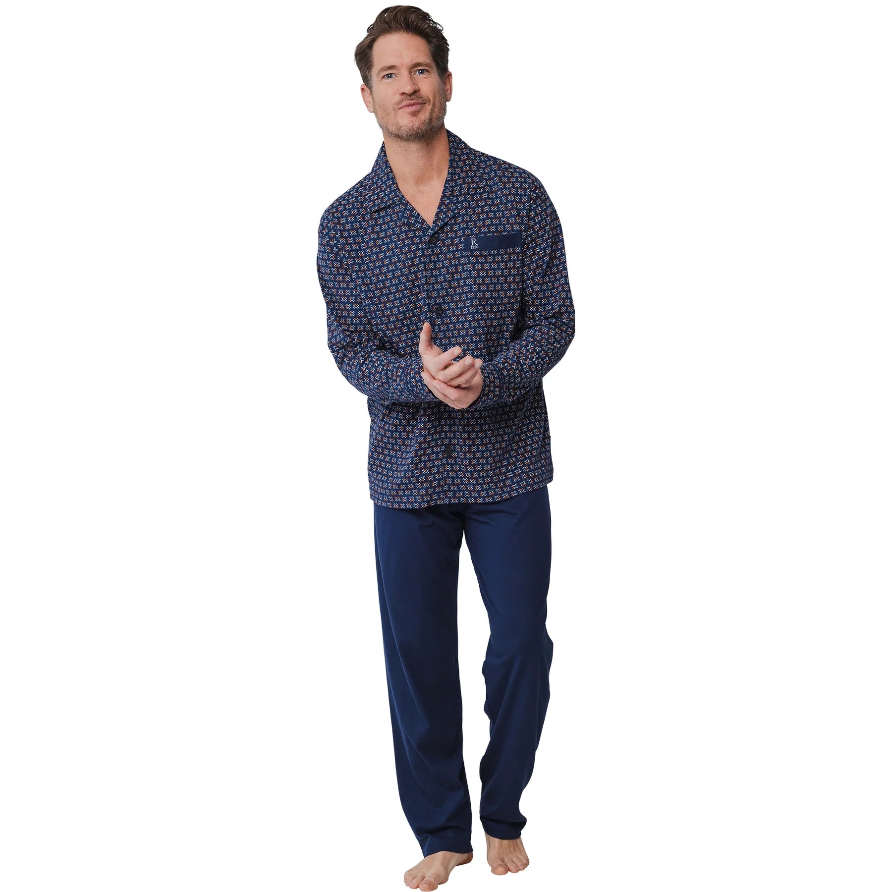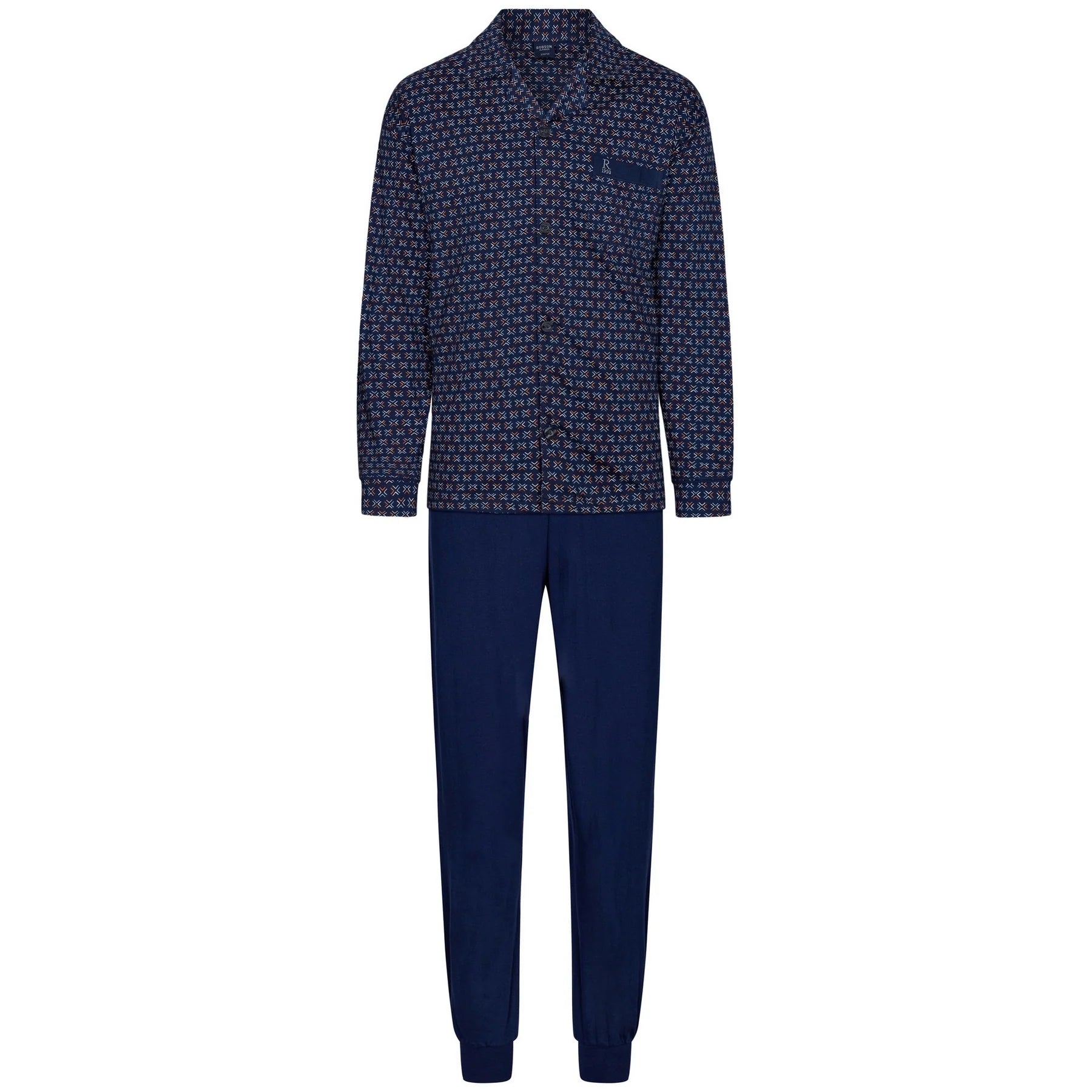 Mooie Robson doorknoop pyjama in katoen single jersey de broek heeft een rechte pijp. De pyjama is gemaakt van 100% katoen single jersey.