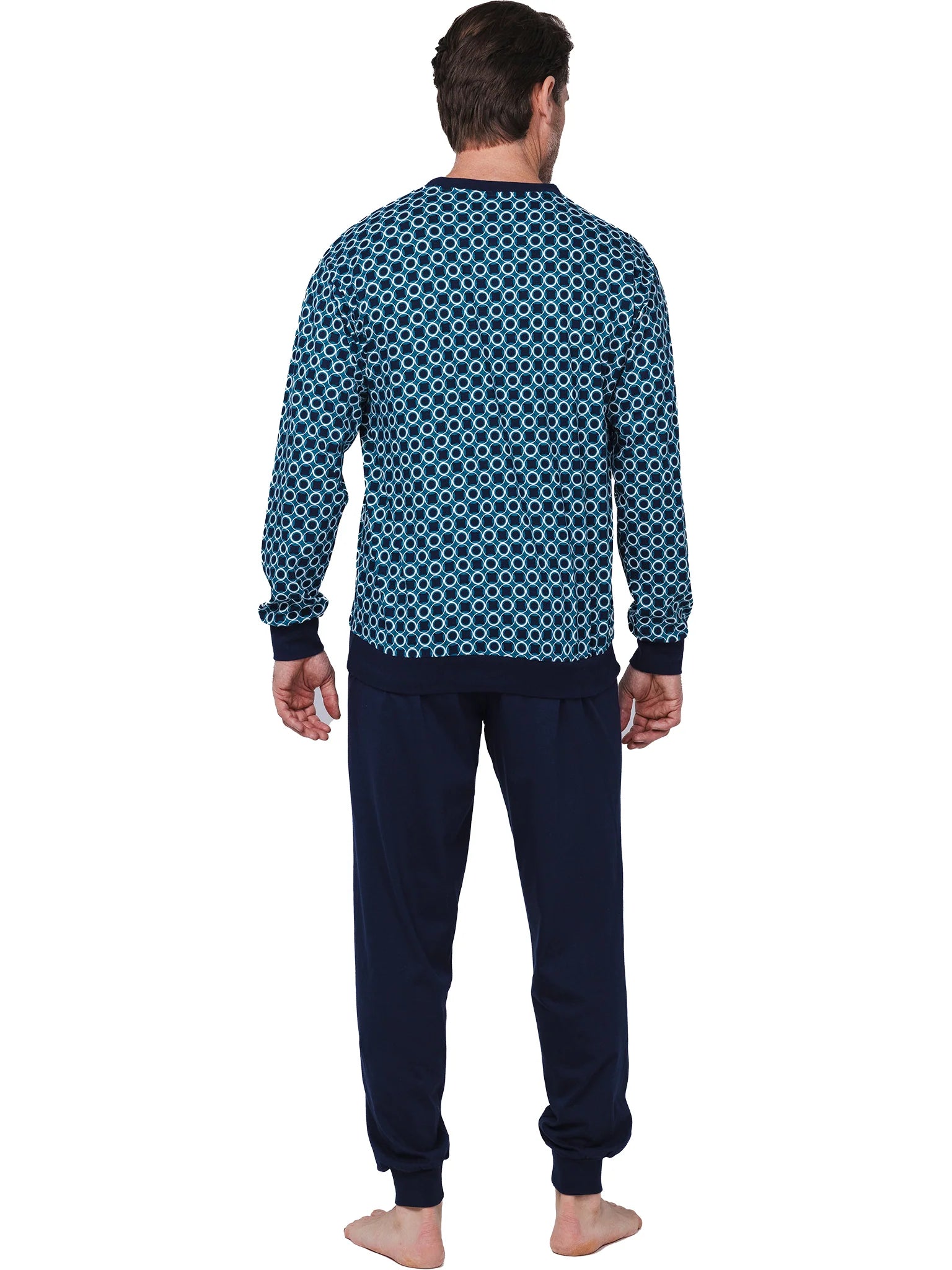 Robson heren pyjama met boorden circels - 122252-812-1 - Donker blauw